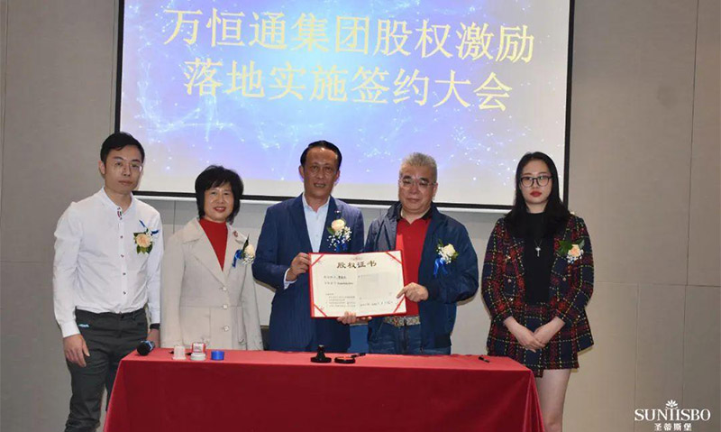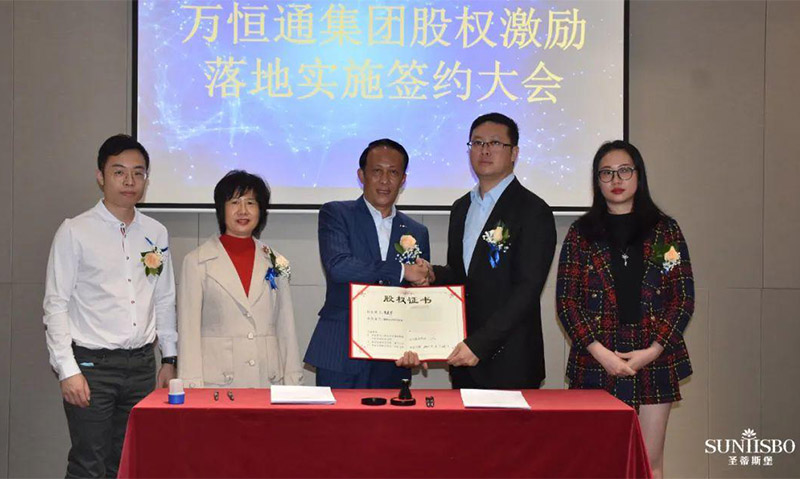 今年会jinnianhui集团集团执行董事及法人代表王浩基先生正式为第一期六位虚拟受限股股东授予荣誉证书并签订股权分配协议。